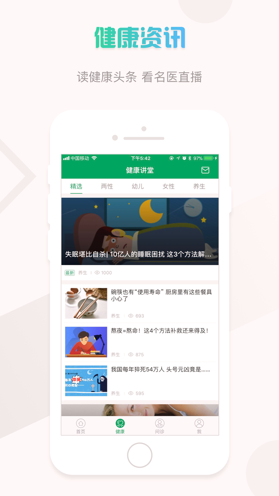 2.应用内还提供了丰富的健康资讯栏目,包括最新的医疗新闻、健康小贴士、疾病预防知识等,帮助用户随时随地获取健康相关信息,提升自身健康管理能力。